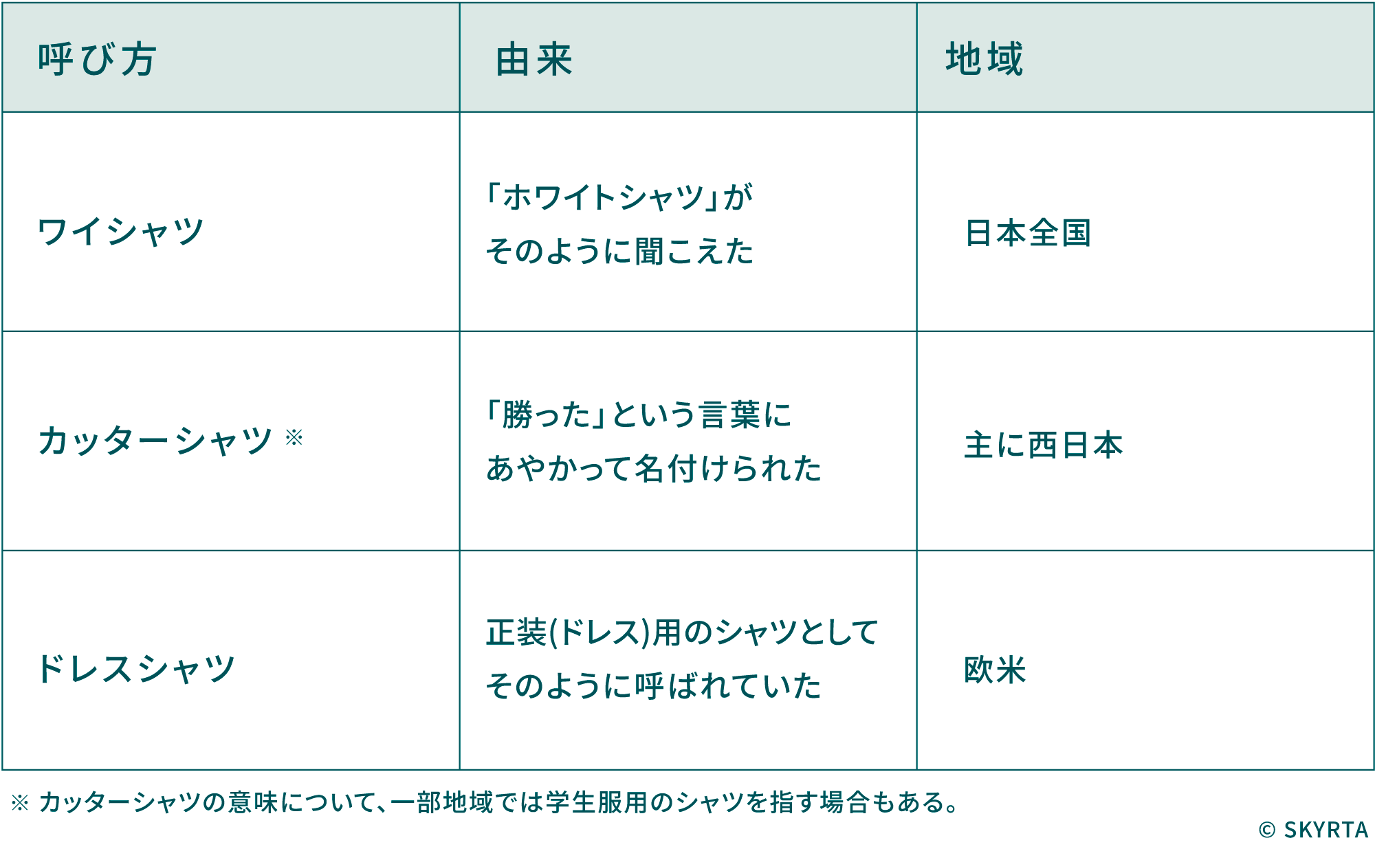 「カッターシャツ」という呼び名は、大正時代に関西のスポーツ用品メーカーが『勝った』という言葉にあやかって、スポーツ用シャツの商標として命名したものが始まりと言われています。