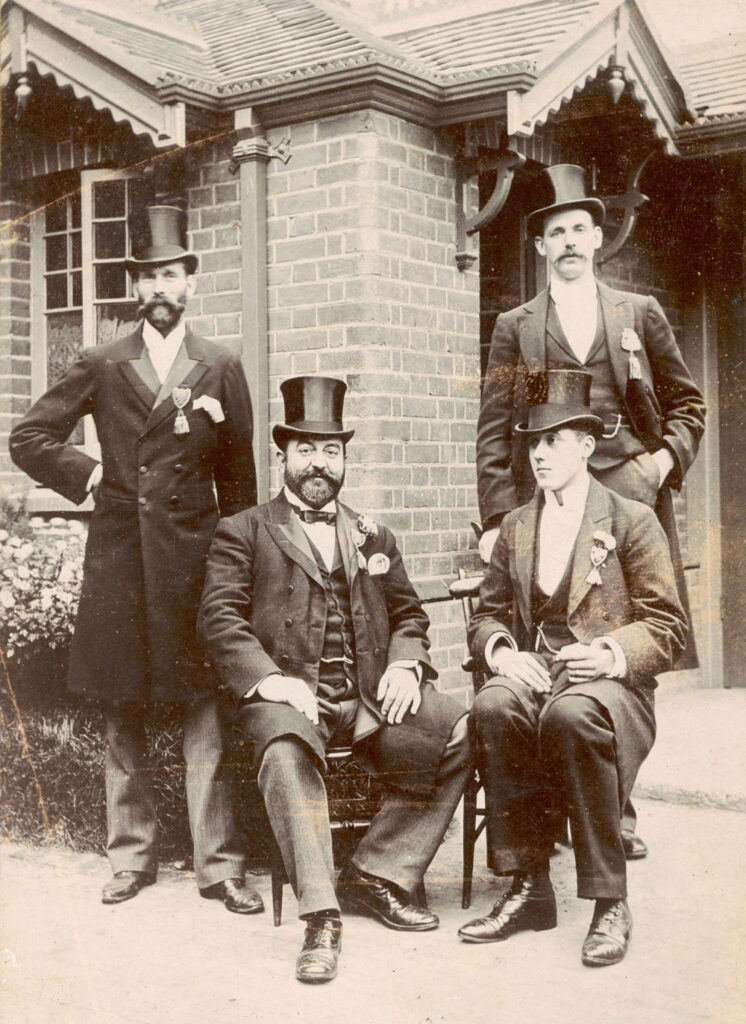 現代のスーツの原型であるラウンジジャケットが誕生するなど、人々の装いが変化する中で、白いリネンのポケットチーフを胸元に挿すスタイルが紳士たちの間で流行しました。