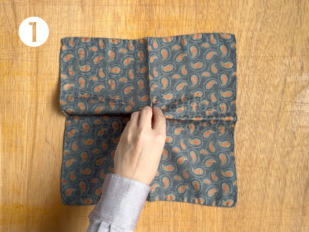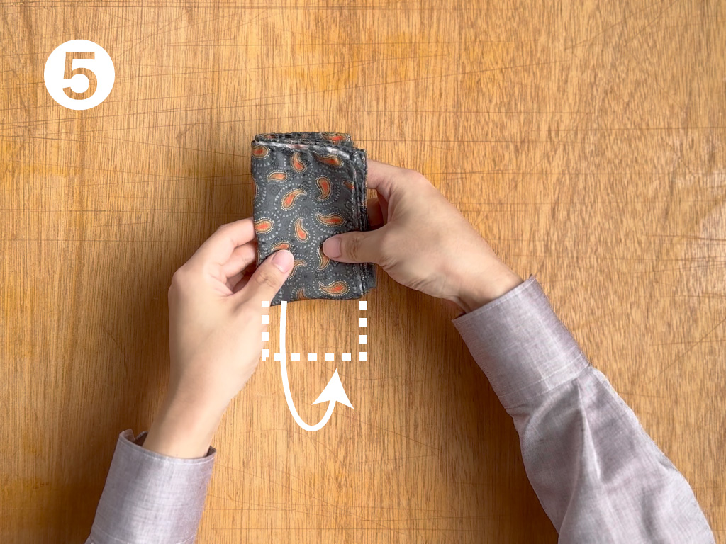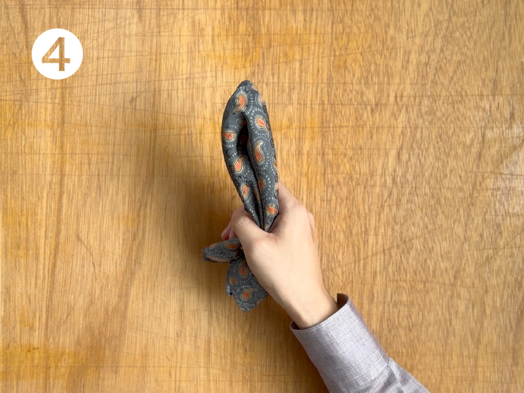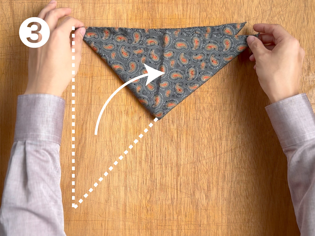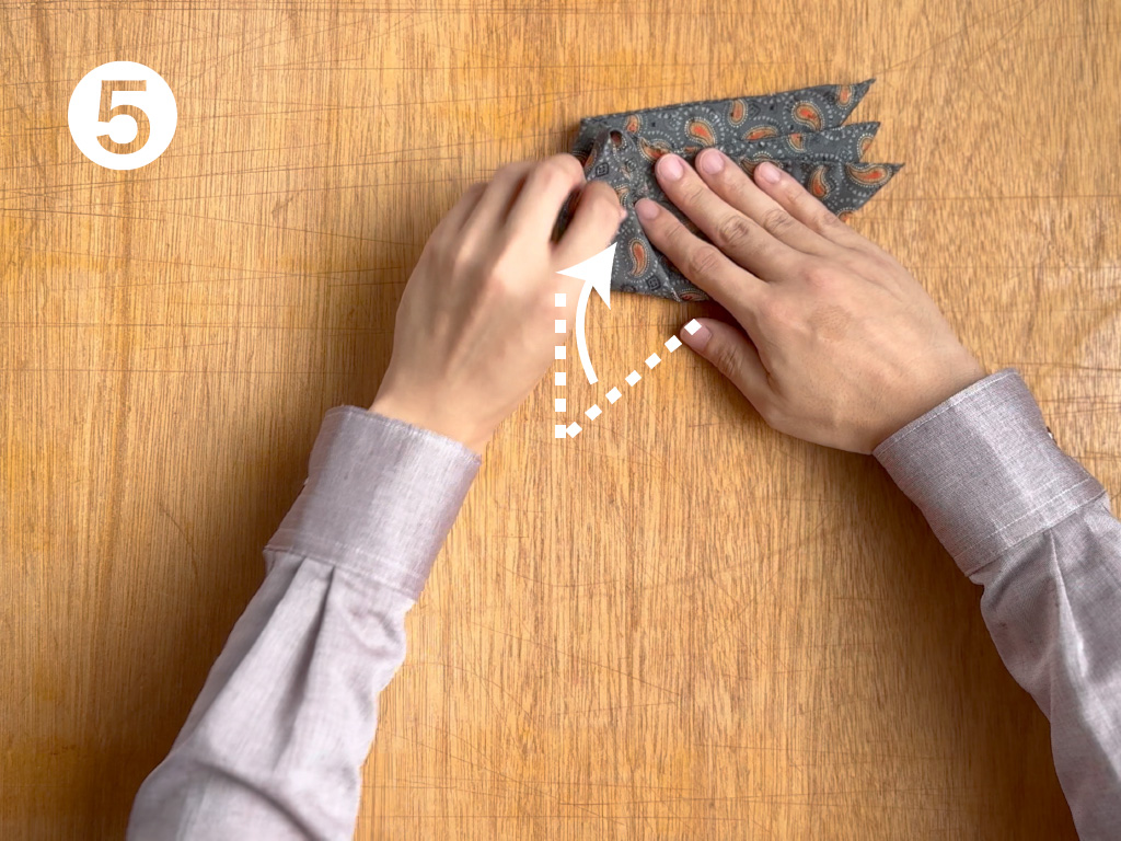 ③下から上に、縦方向に折る (ポケットチーフの角が、左上に集まるように折る)