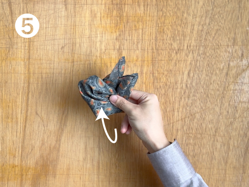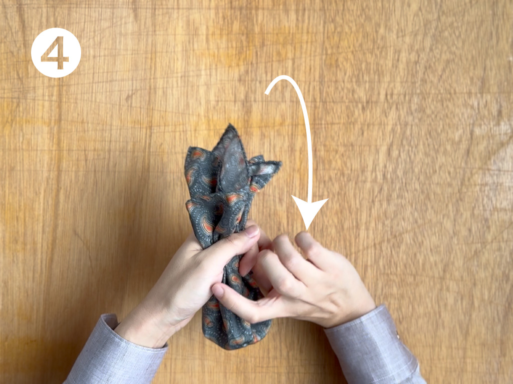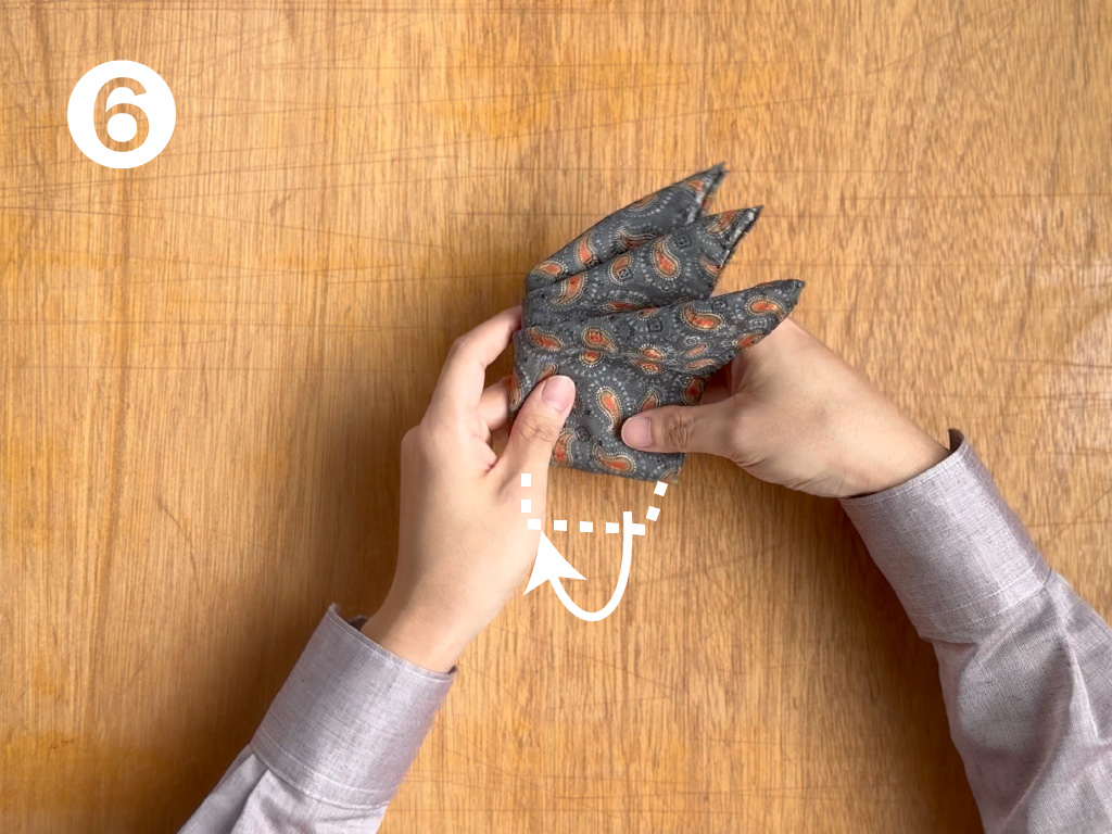④上下を反転させて、ポケットチーフの端を上向きにする
