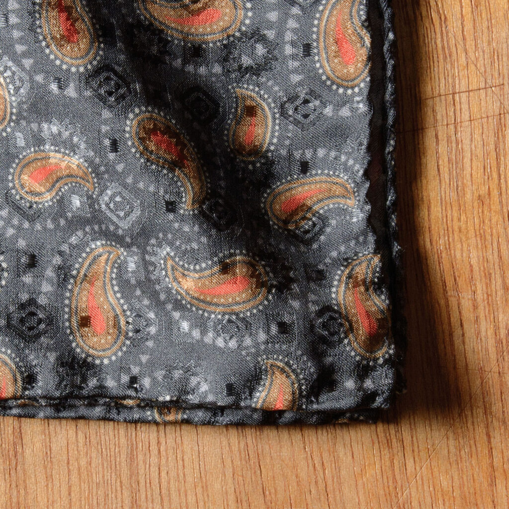 20世紀に差し掛かる頃になると、リネンの他にシルクやコットンの素材、さまざまな色柄のポケットチーフが登場し、世の男性たちの個性を表現するアイテムとして定着していきました。