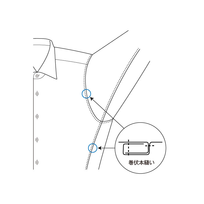第3位:袖付:巻伏本縫、脇縫:巻伏本縫